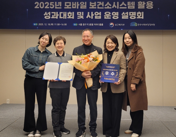 한국사회보장정보원이 전국 AI・IoT 기반 어르신 건강관리사업 참여 보건소를 대상으로 실시한 이번 평가에서 거제시보건소는 행정업무 부담 경감 및 대상자 건강관리 효율성 제고를 위한 모바일 보건소 시스템(MPHIS) 활용에서 우수상을 수상하며 2년 연속 우수기관 수상의 성과를 거뒀다.
