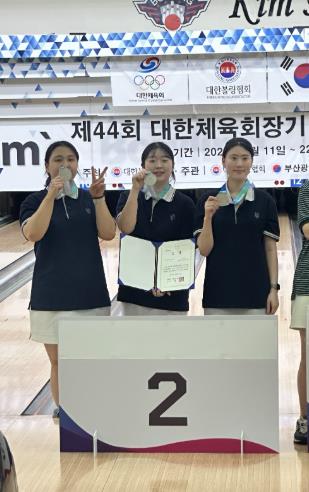 선수단은 이번 대회의 여자 일반부 단체전 3인조 경기에서 홍소리·이정민·최아영 선수로 팀을 이뤄 4경기 합계 2천907점(평균 242.3점)을 기록하며 2위를 차지했다.