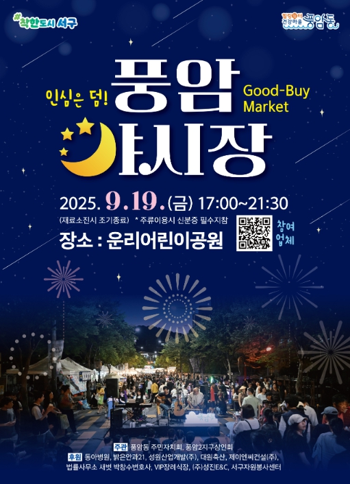 김이강 서구청장은 “마을 주민 간 상생과 연대로 만들어진 풍암야시장은 ‘착한도시 서구’의 선한 영향력을 느낄 수 있는 의미 있는 행사”라며 “따뜻한 마을공동체 속에서 주민 삶의 질 향상과 골목상권 활성화를 통해 더욱 살기 좋은 행복공동체가 조성되도록 최선을 다하겠다”고 말했다.