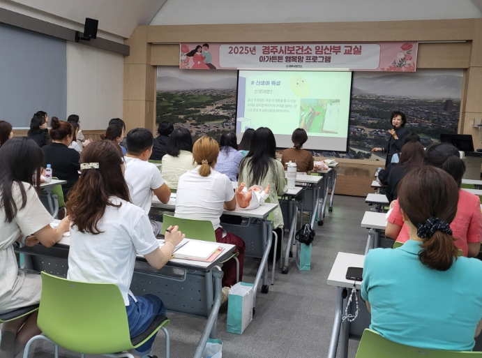 이번 프로그램에는 지역 임산부 25명과 가족이 함께 참여했으며, 동국대학교 WISE 캠퍼스 어용숙 교수가 강사로 나서 출산을 앞둔 가정의 불안감을 해소하고 가족 간 유대감을 높이는 방법을 전했다.