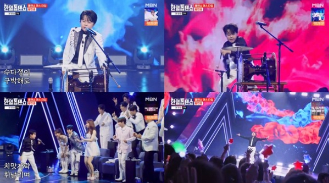 황민호는 이어 "갈라쇼 소리질러"라고 힘차게 외친 뒤 혼신의 힘을 쏟아붓는 격렬한 장구 퍼포먼스로 보는 이들의 혼을 쏙 빼놓았다.