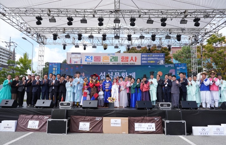 성균관 청년유도회 음성군지부는 앞서 지난달 전 국민을 대상으로 1쌍의 커플, 부부, 예비부부 등 모집을 실시해 1쌍의 부부를 선정, 이날 축제장에서 전통 혼례를 진행했다.