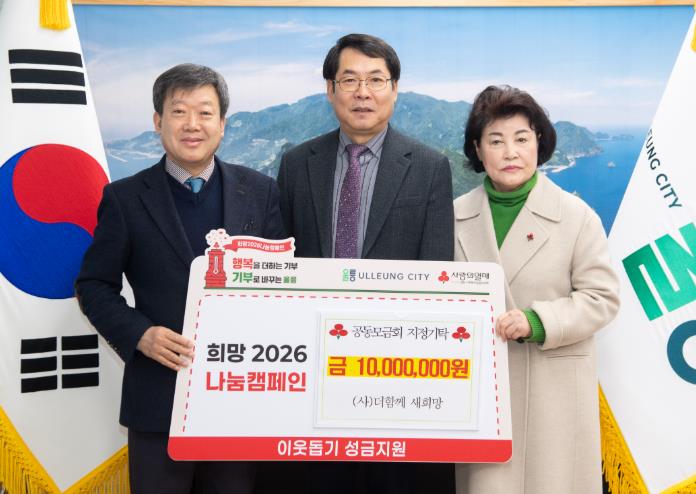 울릉군수는 “(사)더함께새희망 회장님의 성금 기탁에 진심으로 감사드린다”며 “소중한 지정기탁은 도움이 필요한 주민들에게 큰 힘이 된다”고 말했다.