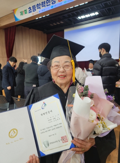 특히 졸업생 중 최고령자인 이복순 씨(96세)는 총 240시간의 교육과정을 100% 출석해 성실히 이수한 공로로 교육감 표창장을 받았다.