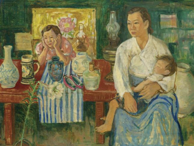 임군홍의 '가족'(1950)은6․25 전쟁 발발 보름 전부터 그리기 시작한 그림으로, 미완성작으로 추정된다. 명륜동 자택을 배경으로 아내와 장녀, 둘째 아들 그리고 뱃속에 곧 태어날 막내딸까지 함께 담아 가족에 대한 깊은 애정을 보여준다. 백영수의 프랑스 체류 시기에 제작된 연작 '모성의 나무'(1998)는 작가가 일평생 몰두했던 주제인 가족과 이동을 다룬다. 서로 밀착한 어머니와 아이의 모습은 한없는 사랑을 보여주는 동시에 어머니에 대한 작가의 그리움을 투영한다.