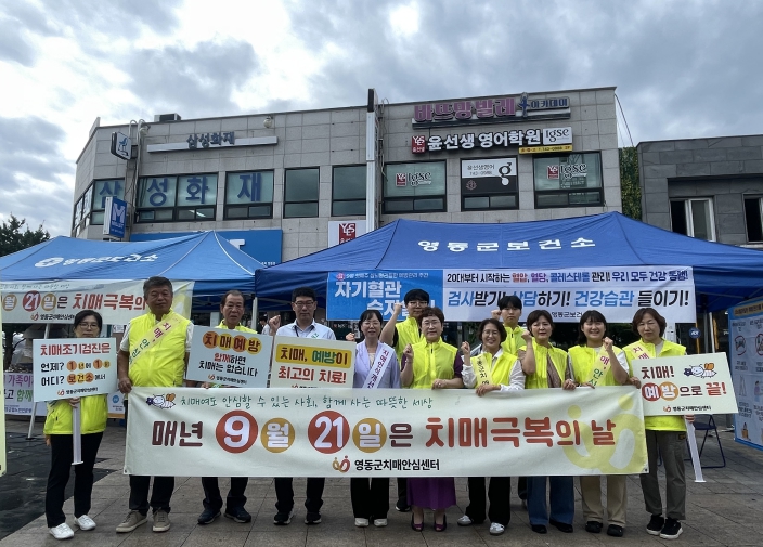 이번 행사에서는 △영동군보건소 △영동군립노인전문병원 △신중년 경력형 일자리사업 참여자 직원들이 참여해 △알쏭달쏭 치매 ○·X 퀴즈 풀이 △가두 행진 △홍보 물품 배부 등을 통해 치매가 있어도 함께 행복하게 살 수 있는 치매 친화적인 환경 조성에 적극 앞장섰다.