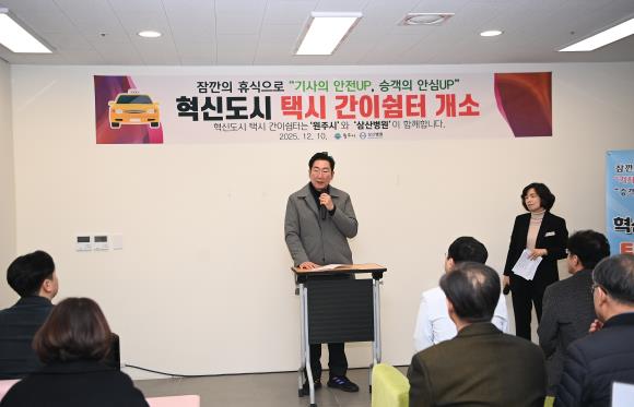 개소식에는 원강수 시장을 비롯해 삼산병원 관계자, 택시 운수 종사자 등이 참석해 쉼터 조성을 축하하고 현장 시설을 점검했다.