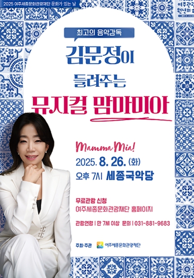 여주시민의 문화복지를 위해 매달 마지막 주 중 하루, 무료로 다양한 장르의 공연을 선보이는 여주세종문화관광재단 '문화가 있는 날' 사업의 일환으로 진행되는 이번 무대는 뮤지컬 음악감독 김문정의 강연과 그가 현재 참여 중인 뮤지컬 '맘마미아'의 음악이 더해진 렉처 콘서트 형식으로 펼쳐진다.