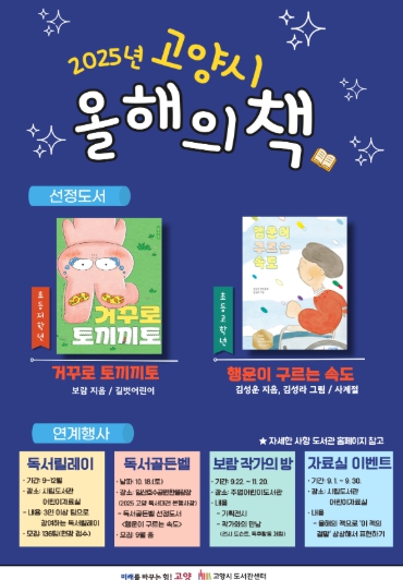 도서관센터 관계자는 “올해의 책은 공공도서관, 학교도서관, 작은도서관, 지역서점 등 다양한 독서 전문가가 추천한 후보도서를 바탕으로 시민이 직접 뽑은 책이라는 점에서 큰 의미가 있다”며, “앞으로도 책을 중심으로 시민이 서로 연결되고 소통하는 고양시만의 독서문화를 확산해 나가겠다”라고 말했다.