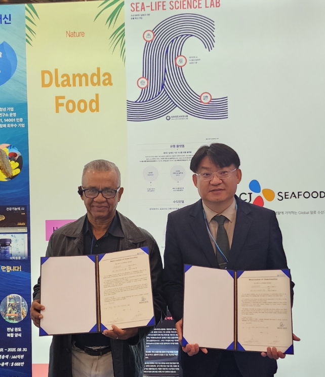 경상국립대학교 창업중심대학사업단은 2024년에 이어 2025년에도 창업기업으로 선정해 지원 중인 ㈜씨라이프사이언스랩이 '2025 부산국제수산엑스포(BISFE 2025)'에 참가해 주한 온두라스 대사관 및 새우양식협회와 수출 협력 MOU를 체결했다고 밝혔다.