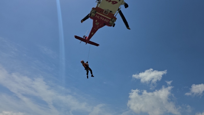 ② 항공 및 산악구조 교육을 이수한 구조대원이 경량 구조장비를 휴대한 채 헬기에 탑승하며,