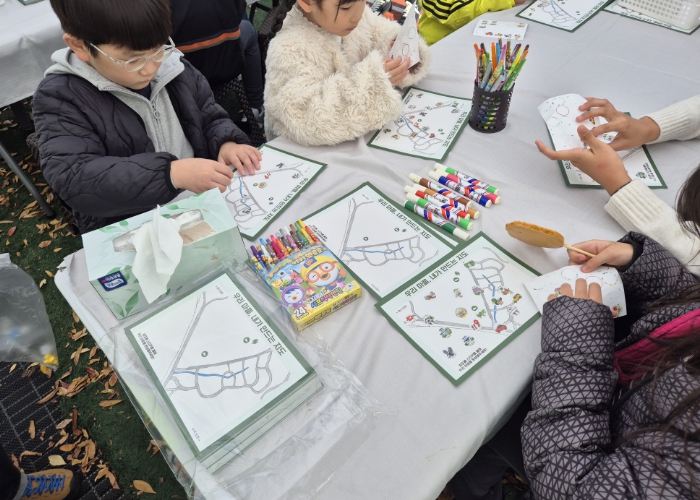 현장에서는 주민들이 “내가 생각하는 복지관은 이다” 문장을 직접 작성하고, 주민동아리 어반스케치가 재능기부로 제작한 마을지도를 배경으로 자신이 사는 곳이나 애정 공간에 스티커를 붙이며 ‘우리 마을 지도’를 함께 완성했다.