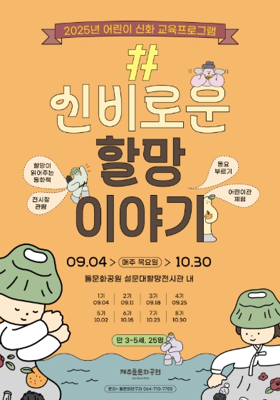 이번 프로그램은 이야기 할머니와 함께하는 구비문학 체험으로, 제주 창조 신화인 ‘설문대할망 이야기’를 통해 어린이들에게 문화유산의 가치를 전달하고 세대 간 소통의 장을 마련한다.
