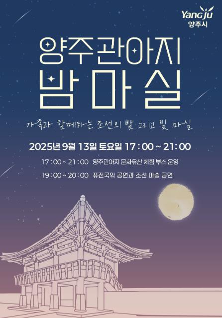 이번 행사는 빛과 이야기로 물드는 가을밤을 배경으로 전통 향기와 현대적 감각이 어우러져 낮과는 전혀 다른 양주관아지의 매력을 시민들에게 선보일 예정이다. 특히, 9월 19일부터 21일까지 열리는 '양주 국가유산 야행'을 앞두고 미리 점등되는 경관조명도 함께 감상할 수 있어, 더욱 환상적인 분위기가 연출될 전망이다.