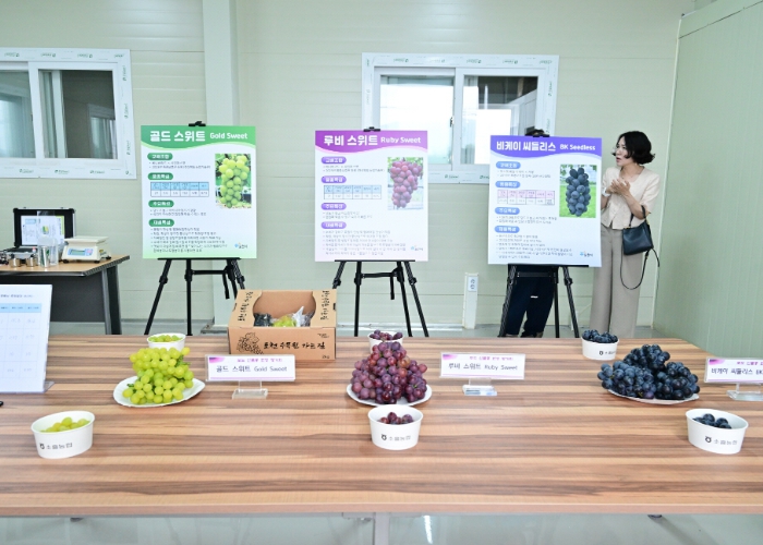 행사는 기후변화로 인한 포도 착색 불량 문제와 씨 없는 고품질 포도에 대한 소비자 수요 증가에 대응해 신품종의 지역 적용 가능성을 검토하기 위해 마련됐다.