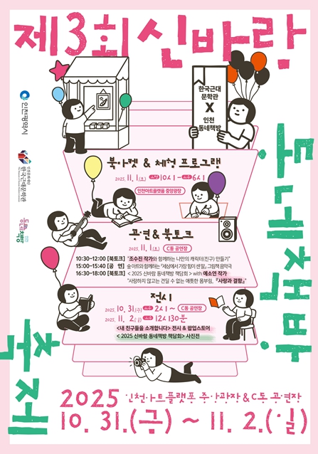 축제 전 기간에 걸친 전시와 공연, 시민 교류 프로그램을 통해 책방과 문학관, 작가와 독자가 함께 어우러지는 인천형 문학축제의 새로운 모델이 제시될 예정이다.