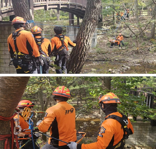 이번 훈련은 가을철 등산객 증가로 인한 산악사고 발생에 대비하여 기초 산악구조기술과 장비 조작 숙련도 향상, 산악사고 대응 매뉴얼 숙지, 인명구조 대처 능력 향상, 소방드론 활용 신속대응체계 확립을 목표로 진행됐다.
