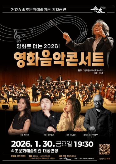 이병선 속초시장은 “이번 영화음악 콘서트가 시민이 새해를 문화예술과 함께 의미 있게 시작하는 계기가 되길 바란다”며 “앞으로도 다양한 공연 콘텐츠를 통해 시민의 문화 향유 기회를 확대해 나가겠다”고 말했다.