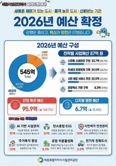 조소연 이사장은 "2026년 예산은 한정된 재원을 어떻게 하면 시민을 위해 가장 가치 있게 쓸 수 있을지에 대한 치열한 고민의 결과"라며, "비효율적인 부분은 과감히 걷어내고, 그 자리에 AI 기술과 안전 인프라를 채워 시민이 체감할 수 있는 '스마트하고 안전한 공공 서비스'를 제공하겠다"고 밝혔다.