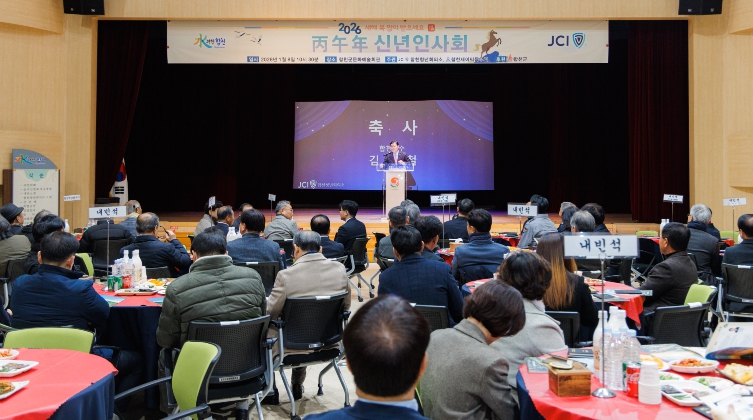 행사는 국민의례를 시작으로 내빈소개, 참석자 전원 새해인사, 합천어린이풍물단 공연, 신년사 및 축사, 새해 덕담, 시루떡 절단식 순으로 진행됐으며, 새해를 맞아 지역 발전과 상생을 다짐하는 자리로 마련됐다.