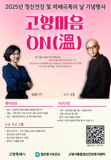 고양시민 누구나 무료로 참여할 수 있으며, 사전 신청은 온라인 또는 전화(고양시정신건강복지센터, 031-968-2333)를 통해 접수할 수 있다.