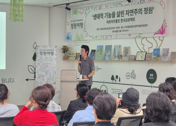 첫 번째 강연에서 이민수 대표는 ‘생태적 기능을 살린 자연주의 정원’을 주제로 강연을 진행했다. 이 대표는 세계적인 정원 디자이너 피트 아우돌프의 작품을 소개하며 정원의 완성 과정에서 시민정원사의 역할을 강조했다. 또한 식물이 생태계 속에서 수행하는 다양한 역할을 설명했다.