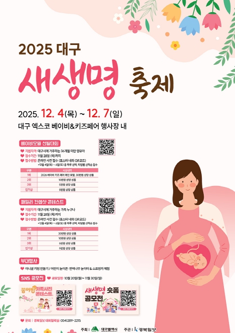 대상 수상자에게는 ‘2026년 대구베이비·키즈페어’의 메인모델 특전과 함께 다양한 상품이 주어진다.