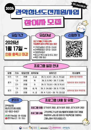 현재 청년 130명을 선착순 모집 중이며, 참여 희망자는 고용24 홈페이지(▷ 취업지원▷청년도전지원사업) 또는 포스터에 있는 QR코드를 통해 신청하면 된다.