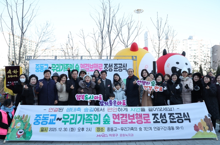 박강수 마포구청장은 “이번 연결보행로 조성으로 그동안 단절돼 있던 구간이 하나의 숲길로 완성돼 매우 뜻깊다”라며, “새롭게 연결된 이 길이 주민들에게 매일 걷고 싶은 소중한 길이 될 수 있도록 안전하고 쾌적하게 관리해 나가겠다”라고 말했다.