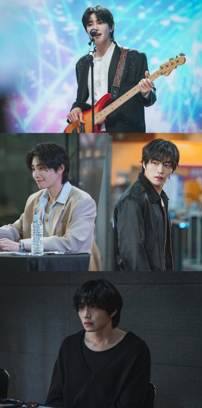 이날 공개된 사진은 한순간에 살해 용의자가 된 아이돌, 도라익의 반전 일상이 담겨있다. 무대에서 누구보다 빛나는 인기 절정의 아이돌 밴드 ‘골드보이즈’, 그 중에서도 압도적 인기를 자랑하는 도라익의 아우라가 눈길을 사로잡는다.