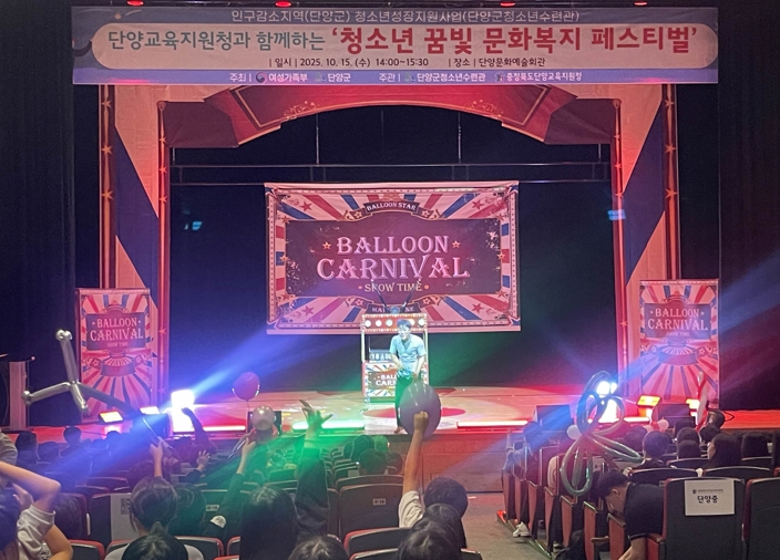 이어진 2부 ‘청소년 꿈빛 문화복지 페스티벌’에서는 단양군청소년수련관이 주관해 벌룬 퍼포먼스, 마술 공연, 비보이 크루 공연 등이 펼쳐지며 참가자들에게 큰 호응을 얻었다.