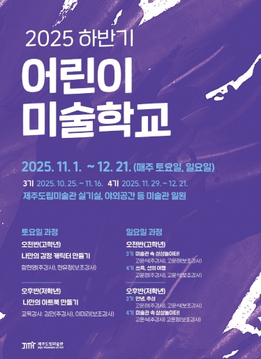 이종후 제주도립미술관장은 “어린이 미술학교는 매년 지역에서 활동하는 작가들을 초빙하여 운영하는 미술관 소장품 연계 특화프로그램”이라며 “상반기에 이어 하반기에도 도내 어린이들의 많은 참여를 통해 창의력과 예술적 감수성을 길러나갈 기회를 갖기를 기대한다”고 말했다.