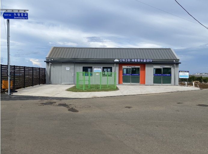 대정읍 신도2리 재활용도움센터는 연면적 74.88㎡의 규모로 올해 4월부터 사업비 3억여 원을 투입하여 지난 9월 완공했으며, ▲가연성수거함(4) ▲재활용분리수거함(12) ▲RFID음식물계량장비(6) 등과 생활쓰레기 배출시설 및 관리사무실, 화장실 등의 편의시설도 함께 설치했다.