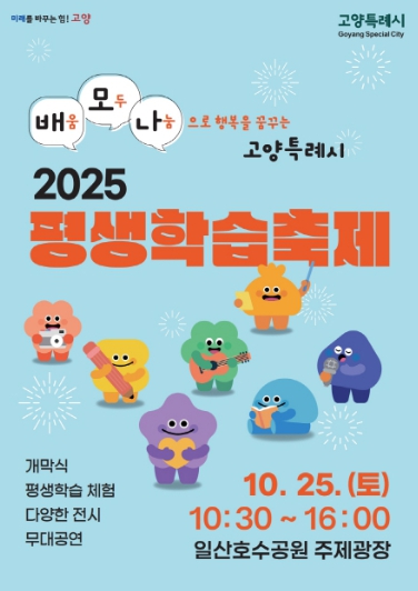 올해 축제는 ‘배움·모두·나눔으로 행복을 꿈꾸는 고양특례시’를 주제로, 약 30여 개의 평생학습기관 및 단체, 동아리가 한 자리에 모여 2025년 고양시의 평생학습 성과를 공유하는 뜻깊은 자리로 마련됐다.