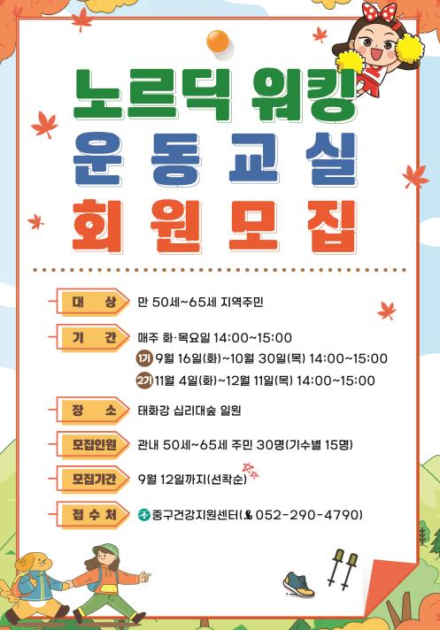 중구건강지원센터 관계자는 “북유럽식 걷기 운동교실이 주민들에게 활기찬 일상을 선물하고 체력을 증진하는 기회가 되길 기대한다”며 “앞으로도 생활밀착형 건강 증진 사업을 적극적으로 추진하겠다”고 밝혔다.
