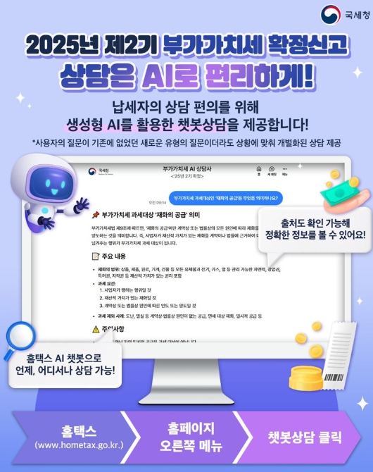 시티트리뷴 - 국세청, 2025년 제2기 부가가치세 확정신고, 상담은 AI로 편리하게!