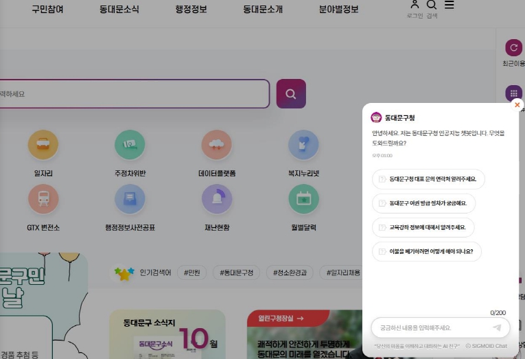 한편, 동대문구는 이미 지능형 CCTV, AI·IoT 기반 어르신 건강관리, 인공지능 교통안전시스템 등 다양한 AI 기술을 행정 현장에 도입해왔다. 구는 이번 챗봇 서비스 개시를 계기로 주민이 체감하는 스마트 행정 혁신을 한 단계 더 발전시킨다는 계획이다.