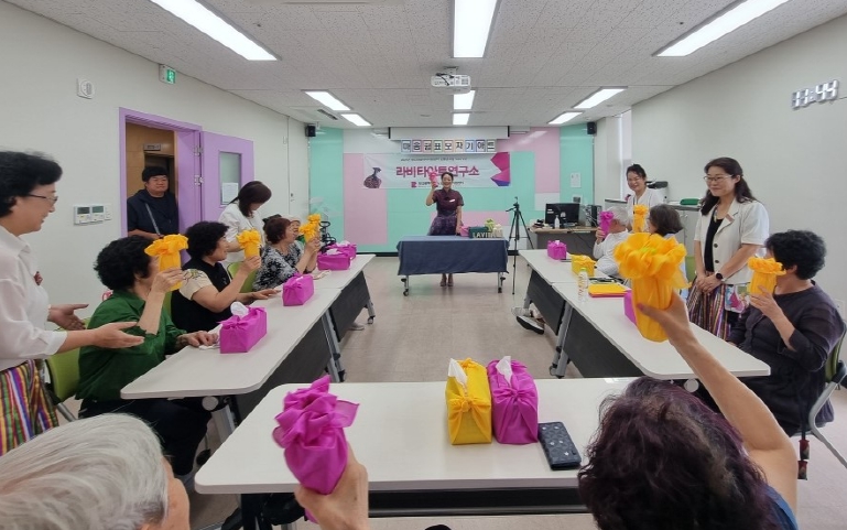 본 프로그램은 부산시 장노년일자리지원센터(아리8기 라비타아트연구소)와 연계하여 보자기를 소재로 가족들의 지친 마음을 감싸고 관계를 묶어 주며 자연을 지키는 친환경적 힐링 활동이다.