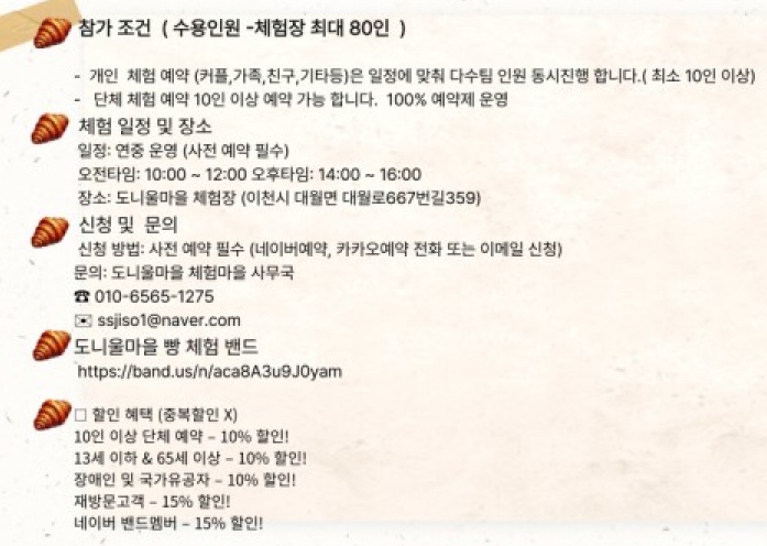 ※ 경기마을 경기진작 사업으로 체험비 절반 지원(최대 1만 원/예산 소진 시까지)