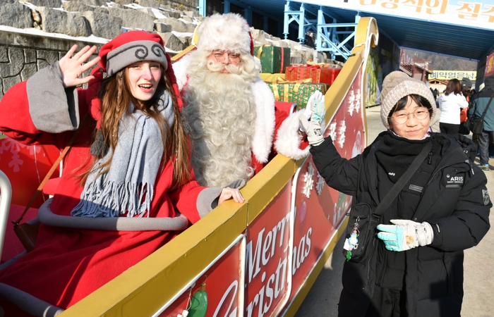 핀란드 로바니에미시 산타마을의 ‘진짜’산타클로스와 요정 ‘엘프’가 17일 화천산천어축제장에 도착했다.