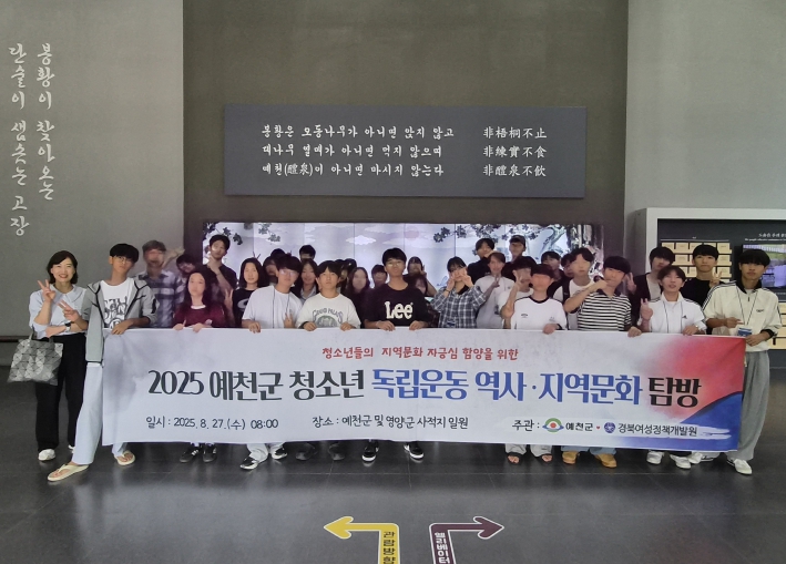 청소년들은 이날 오전 ‘독립군의 어머니’로 불린 남자현 지사의 역사공원과 생가를 찾아 인문학 강의를 듣고 생애와 정신을 되새겼다. 이어 예천군에서 예천박물관, 석송령, 금당실 마을, 용문사 등 다양한 문화자원을 둘러보며 지역문화의 의미를 되짚었다.