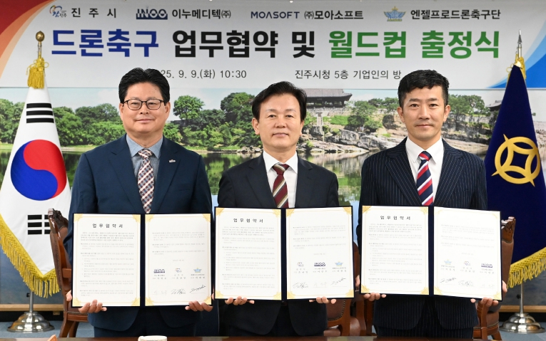 조규일 진주시장은 “이번 협약과 출정식을 통해 드론축구를 비롯한 드론스포츠의 성장 가능성과 선수단의 열정을 확인했다”며 “앞으로도 민간과 협력해 드론산업과 스포츠가 지역에 활력을 더할 수 있도록 노력하겠다”고 말했다.