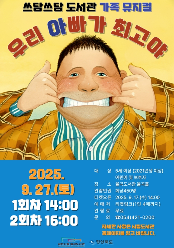 이신기 김천시립 도서관장은 “많은 가족이 도서관을 통해 다양한 책과 공연 등 문화 경험을 즐기고, 함께 따뜻한 시간을 보내는 기회가 되기를 바란다.”고 밝혔다.