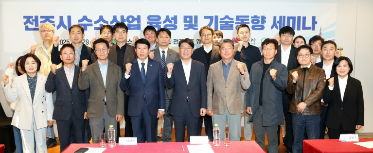 전주시와 사단법인 탄소수소산업연구조합은 29일 베스트웨스턴플러스 전주호텔에서 우범기 전주시장과 남관우 전주시의회 의장, 이상기 한국탄소산업진흥원 상용화수소팀장, 송정민 비나에프씨엠㈜ 상무이사, 전상진 덕산에테르씨티㈜ 상무이사 등 유관기관 및 지역 수소기업 관계자 50여 명이 참석한 가운데 ‘전주시 수소산업 육성 및 기술동향 세미나’를 개최했다.