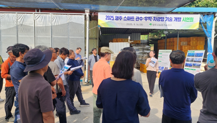 이날 행사는 한상숙 영주시농업기술센터 소장의 인사말을 시작으로 △2025년 기술개발팀 연구성과 발표 △실증 농가 설치 소감 공유 △자동 관수·차광망 시연 △질의응답 및 토론 순으로 진행됐으며, 이어진 과수연구팀의 ‘사과 다축수형’ 설명과 시설 견학이 마련돼 농업인들의 높은 관심을 끌었다.