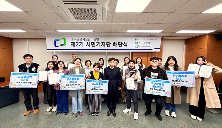 문기봉 대구공공시설관리공단 이사장은 “시민기자단 덕분에 공단과 시민이 가까이 소통할 수 있는 뜻깊은 기회를 가졌다”며, “앞으로도 시민과 함께 공단의 다양한 활동과 가치를 널리 알리고, 참여와 공감을 이어갈 수 있도록 적극 지원하겠다”고 말했다.
