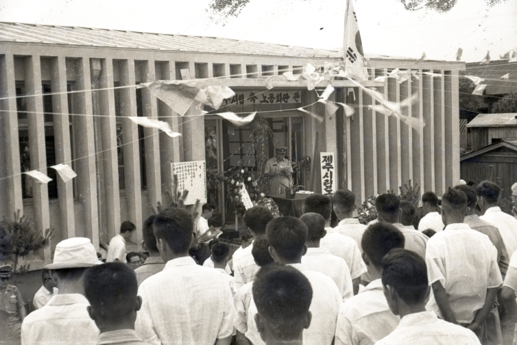 주요시설 설립 관련 기록으로는 1962년 8월 시립노동회관 개관식, 1964년 12월 농협제주도지부 신축건물 낙성식과 사라봉 팔각정 기공식, 1965년 1월 재일교포의 조천면민관 기증 행사, 1972년 5월 제1호 아동공원 개장식 사진이 공개됐으며, 각 시설의 설립 배경과 의미를 담은 설명이 함께 제공된다.