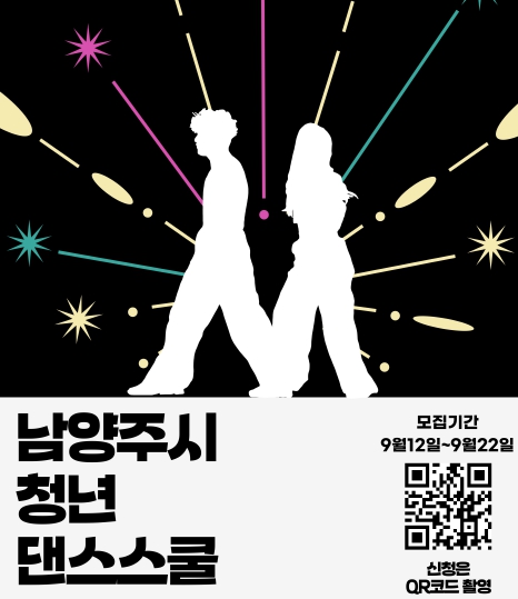 모집 대상은 남양주시에 거주하는 만 19세에서 39세의 청년으로, 춤에 관심 있는 청년은 누구나 신청이 가능하다. 9월 12일 오전 10시부터 네이버폼(QR코드 제공)을 통해 모집하며, 자세한 내용은 시 누리집 및 청년 공식 블로그에서 확인할 수 있다.