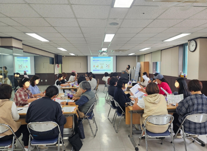 첫 번째 시간에는 남부건강생활지원센터의 업무 소개와 함께 이천시의 지역사회 건강 현황을 공유하고 ‘어르신을 위한 영양 관리’를 주제로 교육을 진행했으며 △노년기의 신체 변화 △어르신을 위한 식생활 지침 및 식생활 안전 가이드 등의 내용을 다루었다.