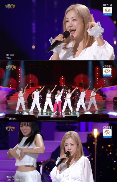 이날 김민희는 화이트 컬러의 재킷과 핫핑크 컬러의 와이드 팬츠를 매치해 무대 위에서 존재감을 드러냈고, 화려한 조명 속에서 정열적인 무대를 펼치며 시청자들의 주말을 흥으로 가득 채웠다.